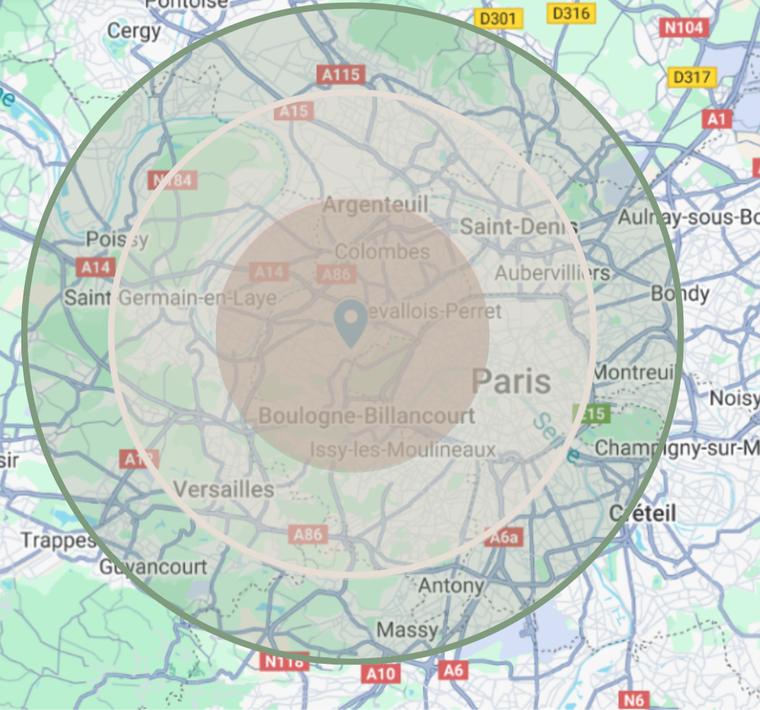 Notre zone de livraison couvre tout le département des Hauts-de-Seine (92), Paris intramuros ainsi que les villes limitrophes des départements 93, 94 et 78.