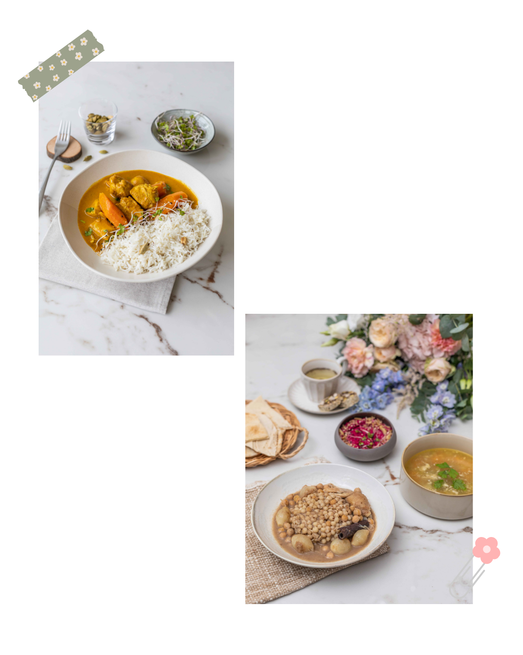 Nos plats, inspirés de la cuisine française et du monde, sont préparés avec des ingrédients frais et de saison, pensés pour soutenir votre vitalité et vous permettre de profiter pleinement de vos moments en famille, sans vous soucier de la cuisine ou des courses.